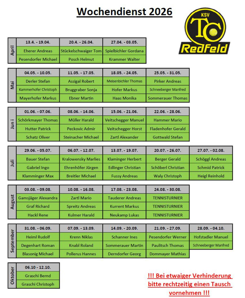 Wochendienst